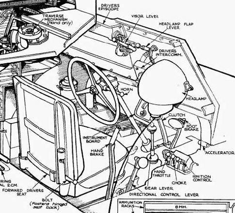 Interfaces: Two sets of headphones and microphones were provided for the front driver and the rear machine gunner.