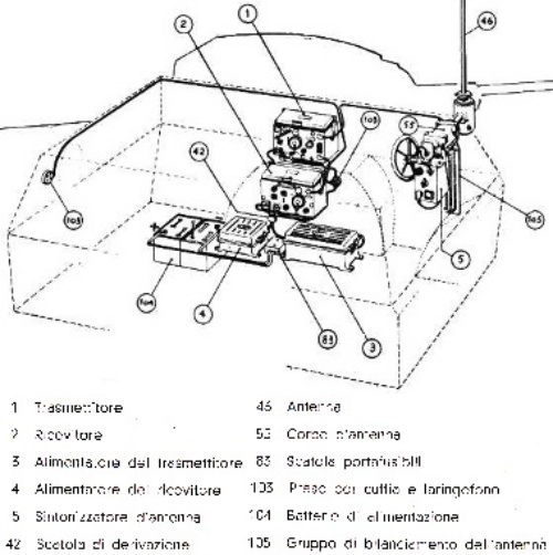While the pre-series AB40 used an unidentified radio system with a right-mounted antenna, all standard production models from March 1941 onward were equipped with the Magneti Marelli RF3M.
