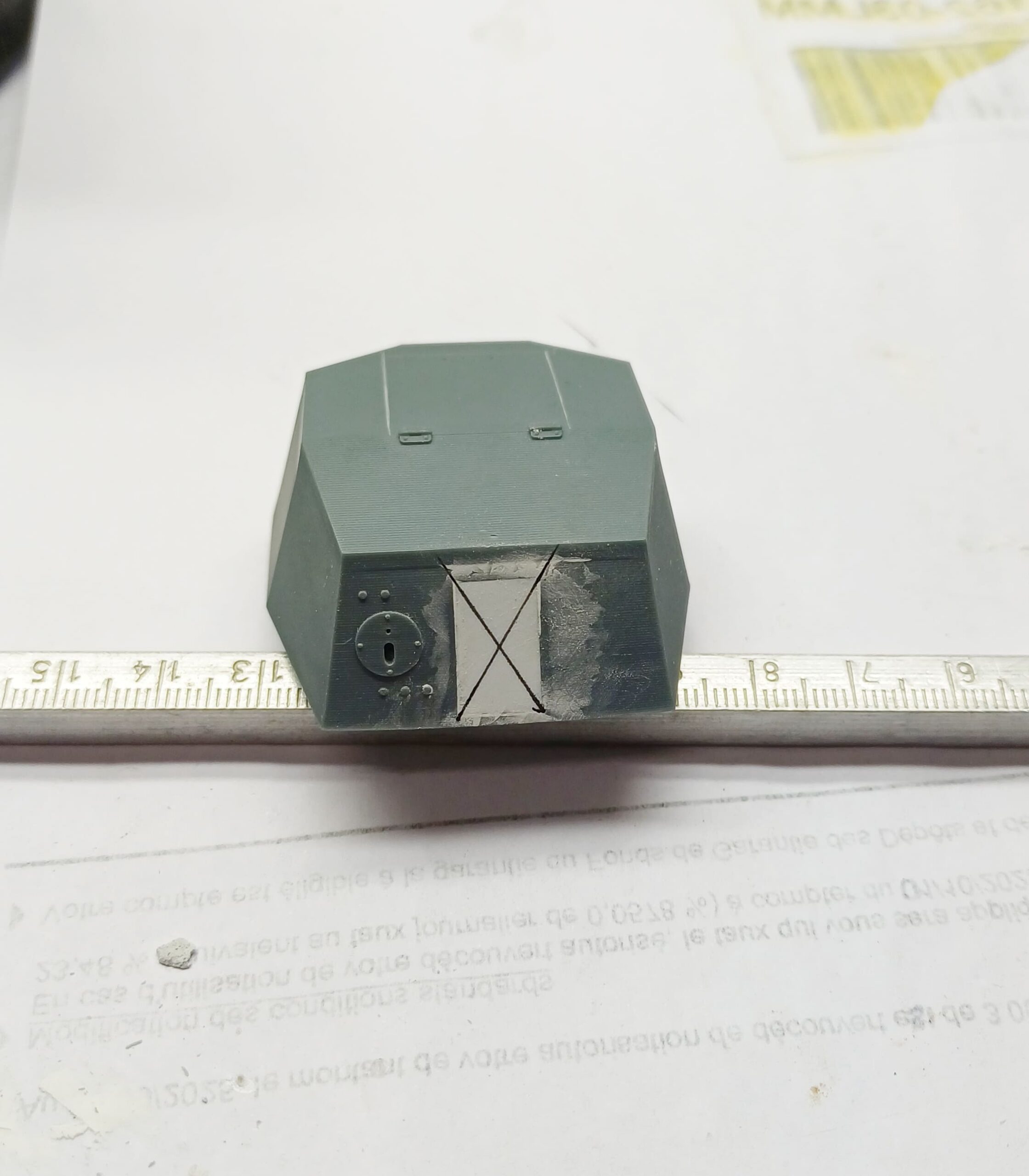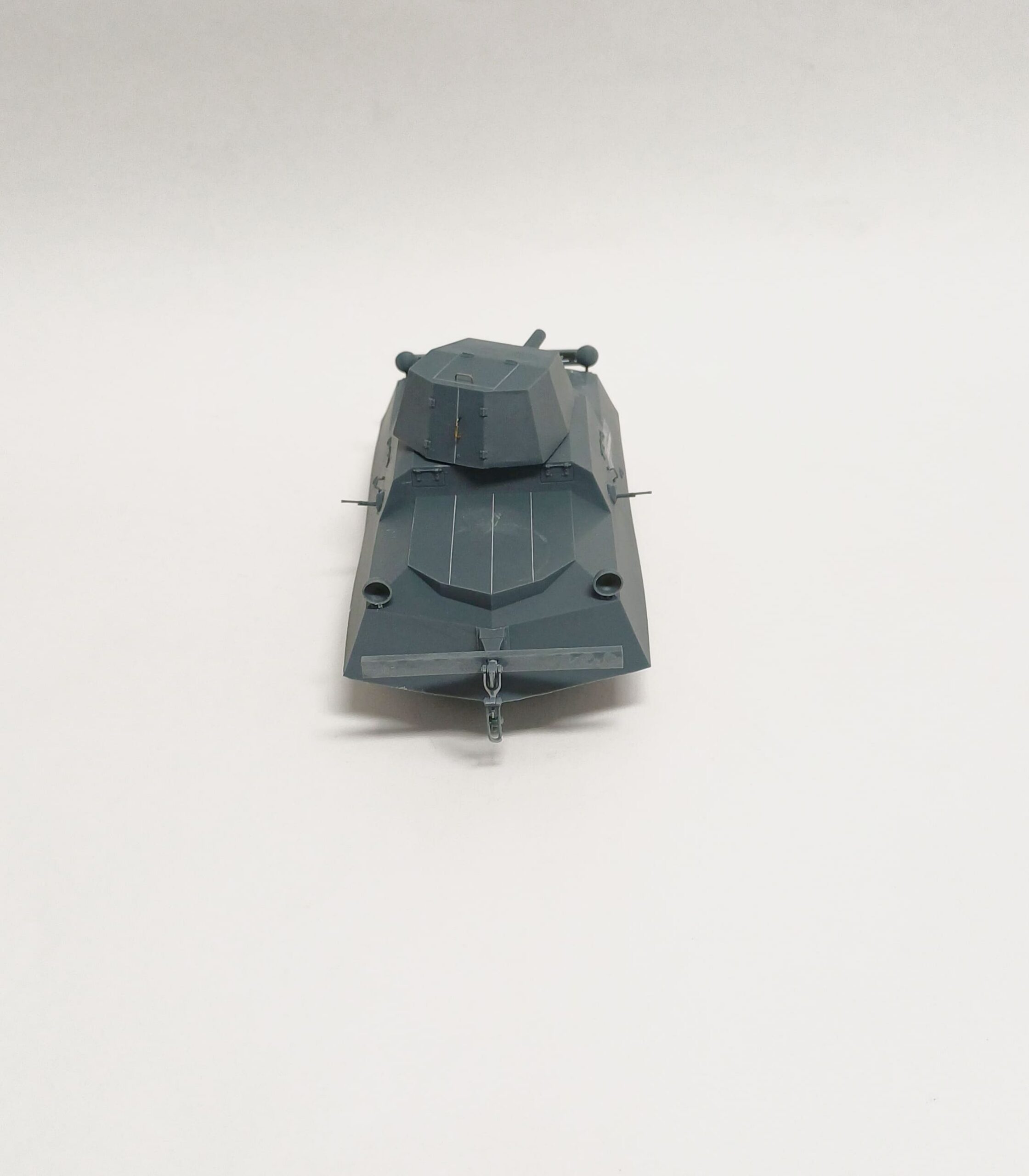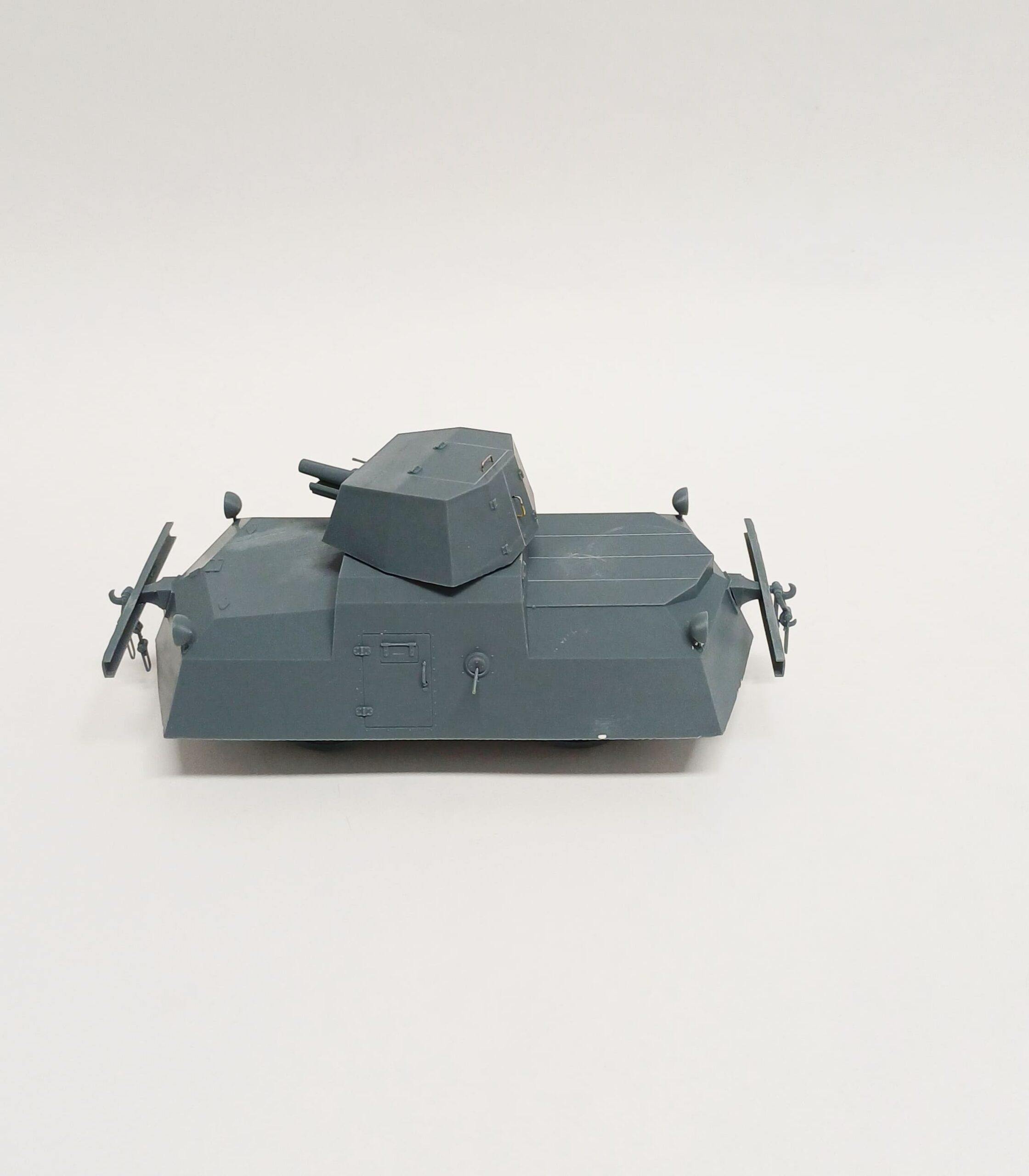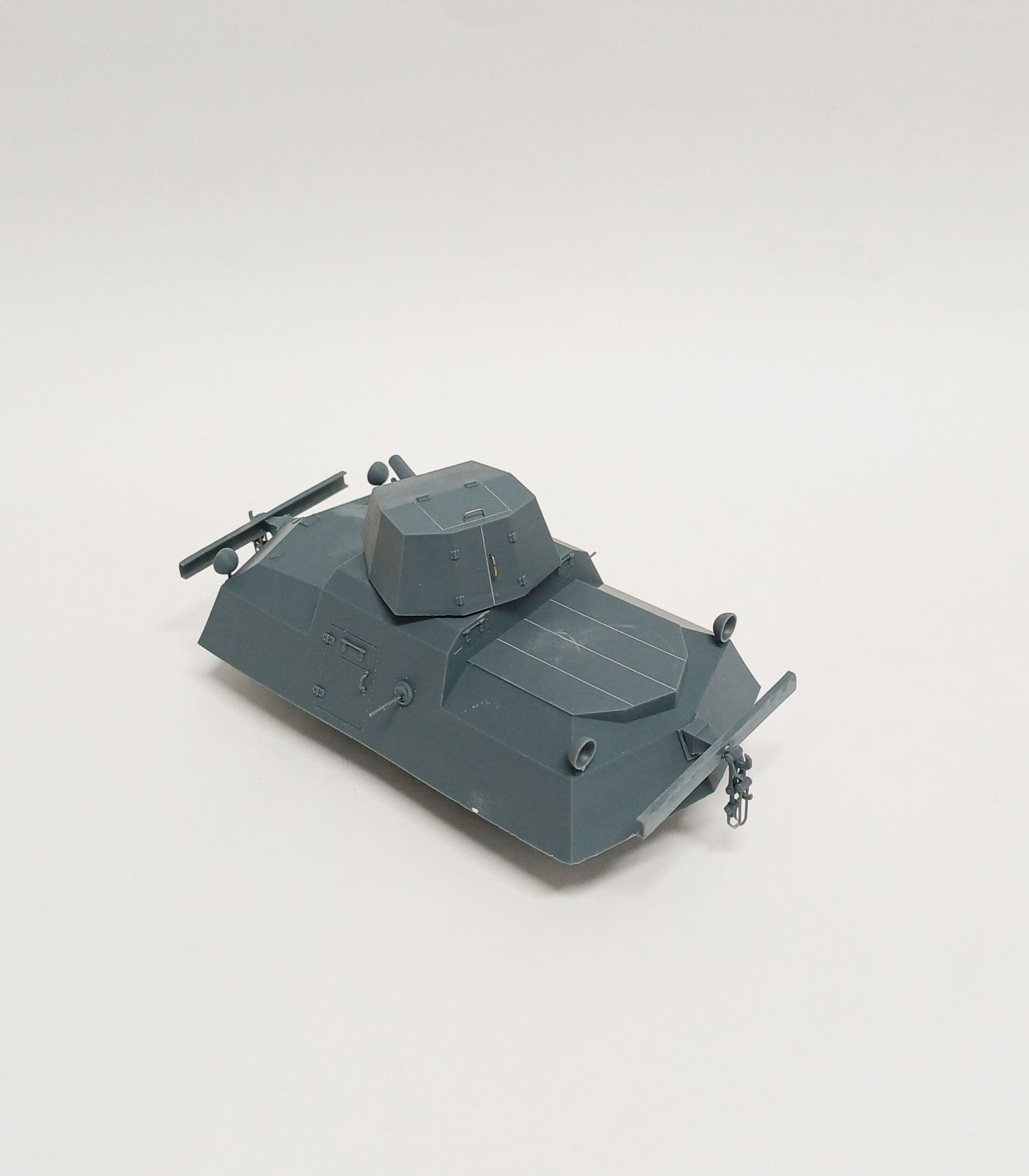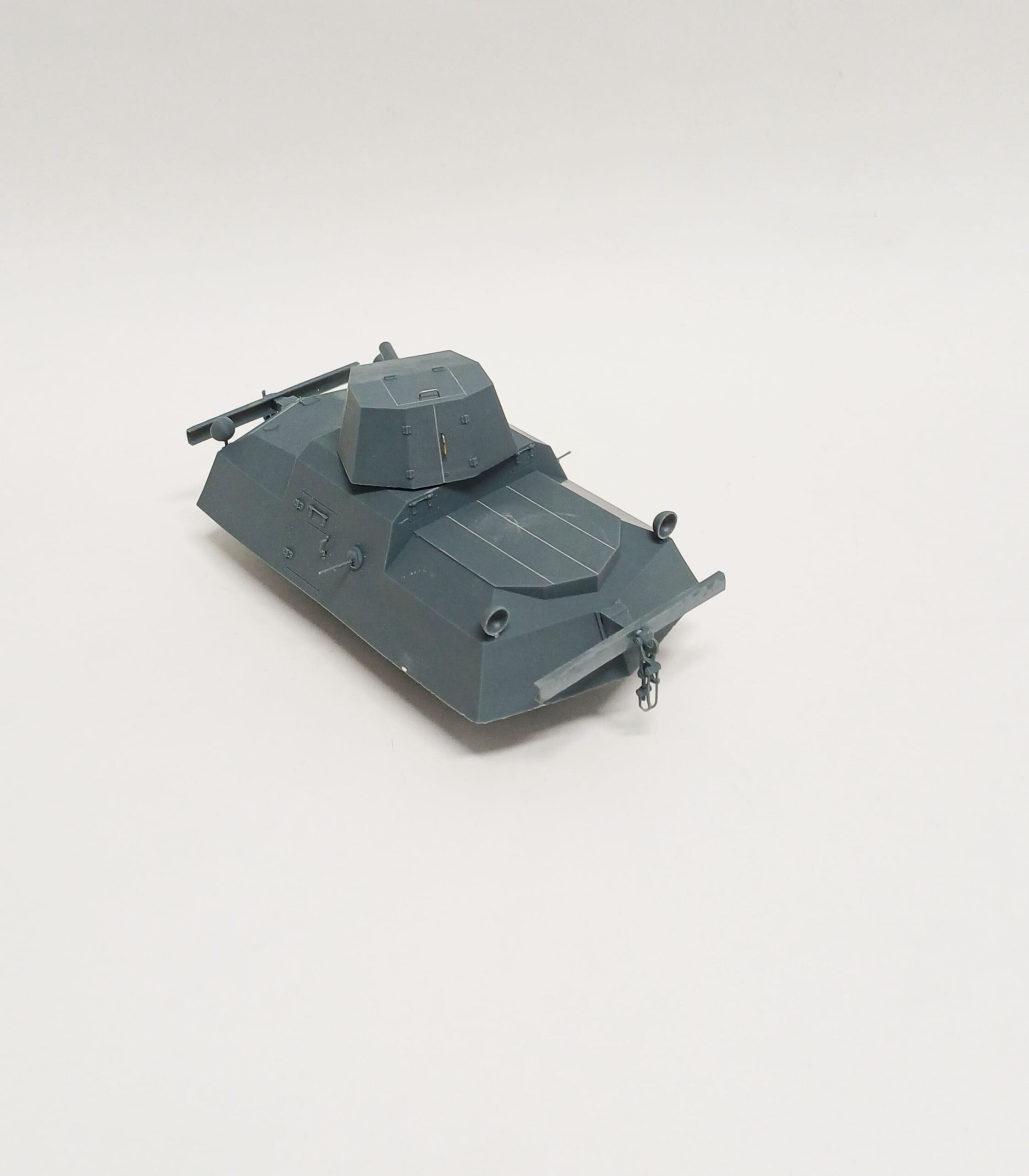 Landshipmodeling recently released the Soviet D-37 and DT-45 railcars. Landshipmodeling is an American brand that offers .stl files so you can 3D print their models yourself. The advantage is getting the files at a very low price; the disadvantage is actually being able to print them. Here’s the link to their website: https://landshipsmodeling.com/collections/digital-products. I’m certainly not a printing pro, but overall, it went pretty well, with a few minor flaws that I think I’ve corrected. There are very few parts to print because it’s a fairly basic vehicle: two hull halves, the turret, the four headlights, the machine guns, the door handles, the front and rear hitching system (modified), and that’s it. The only correction I made was to the gun mount, which is initially just glued onto the turret and therefore remains fixed. I also re-engraved some lines that weren’t deep enough.