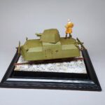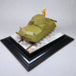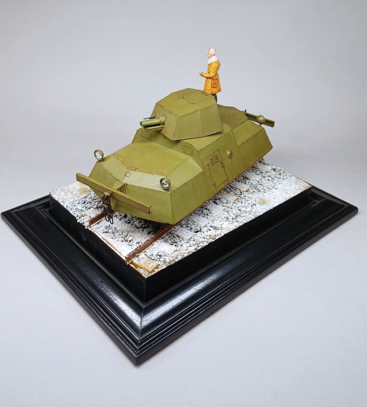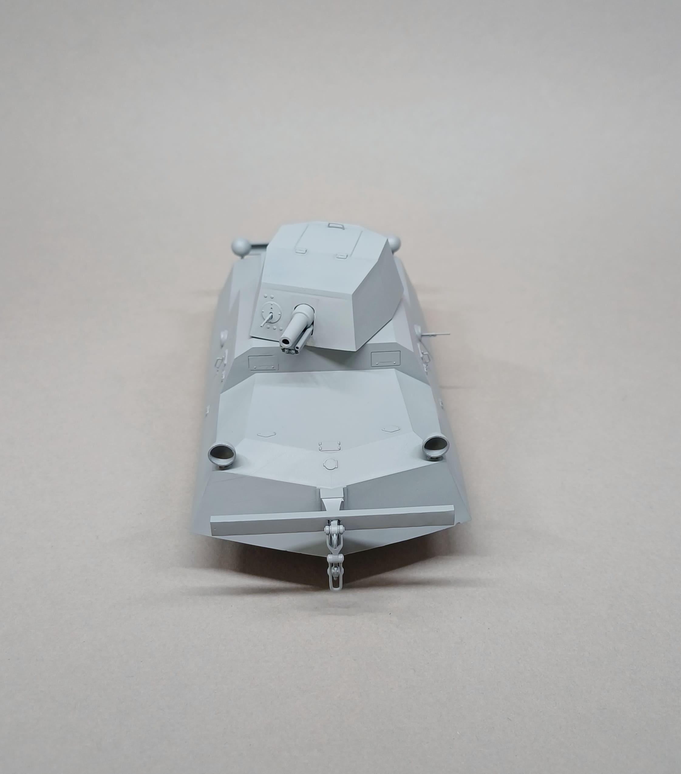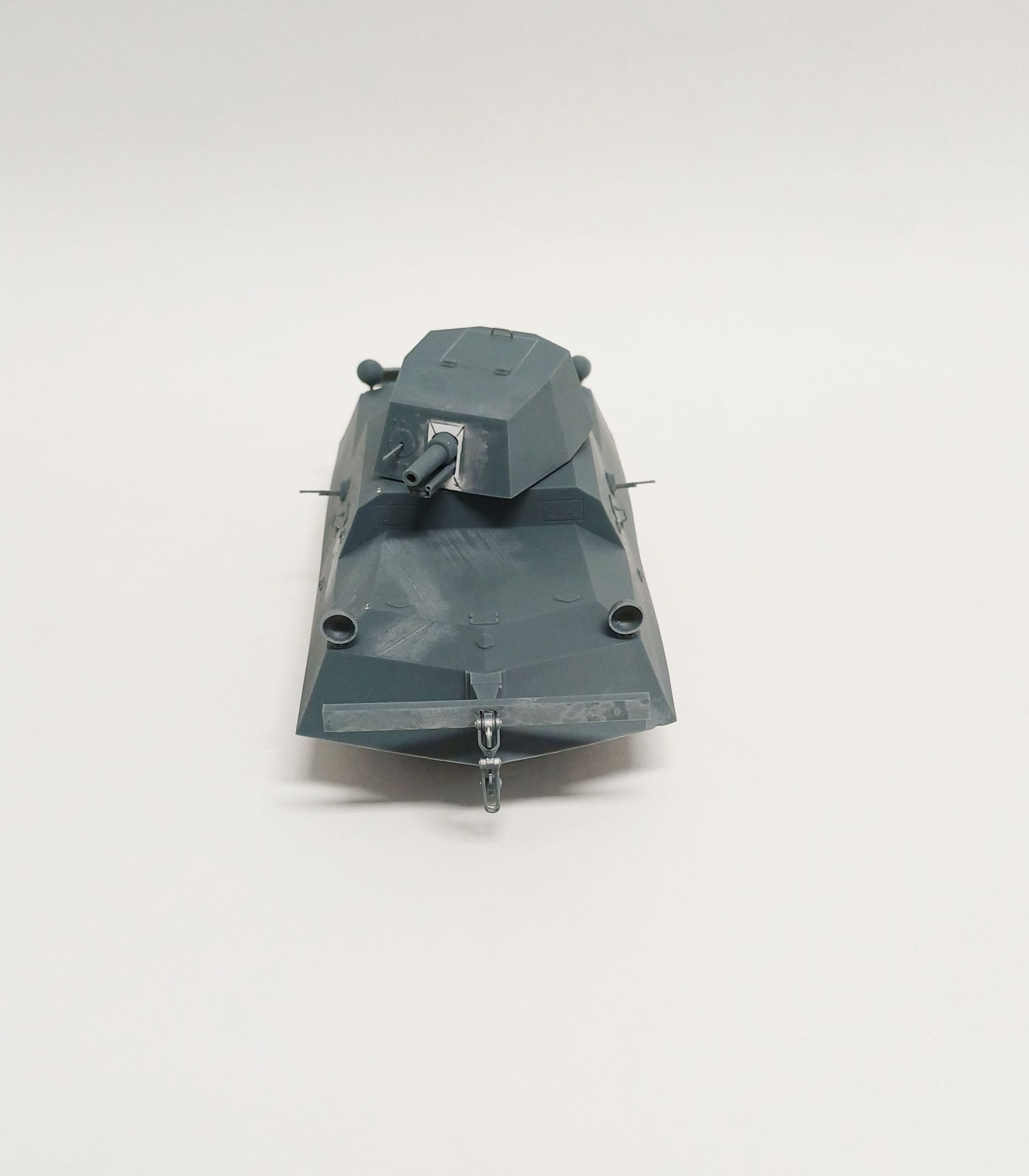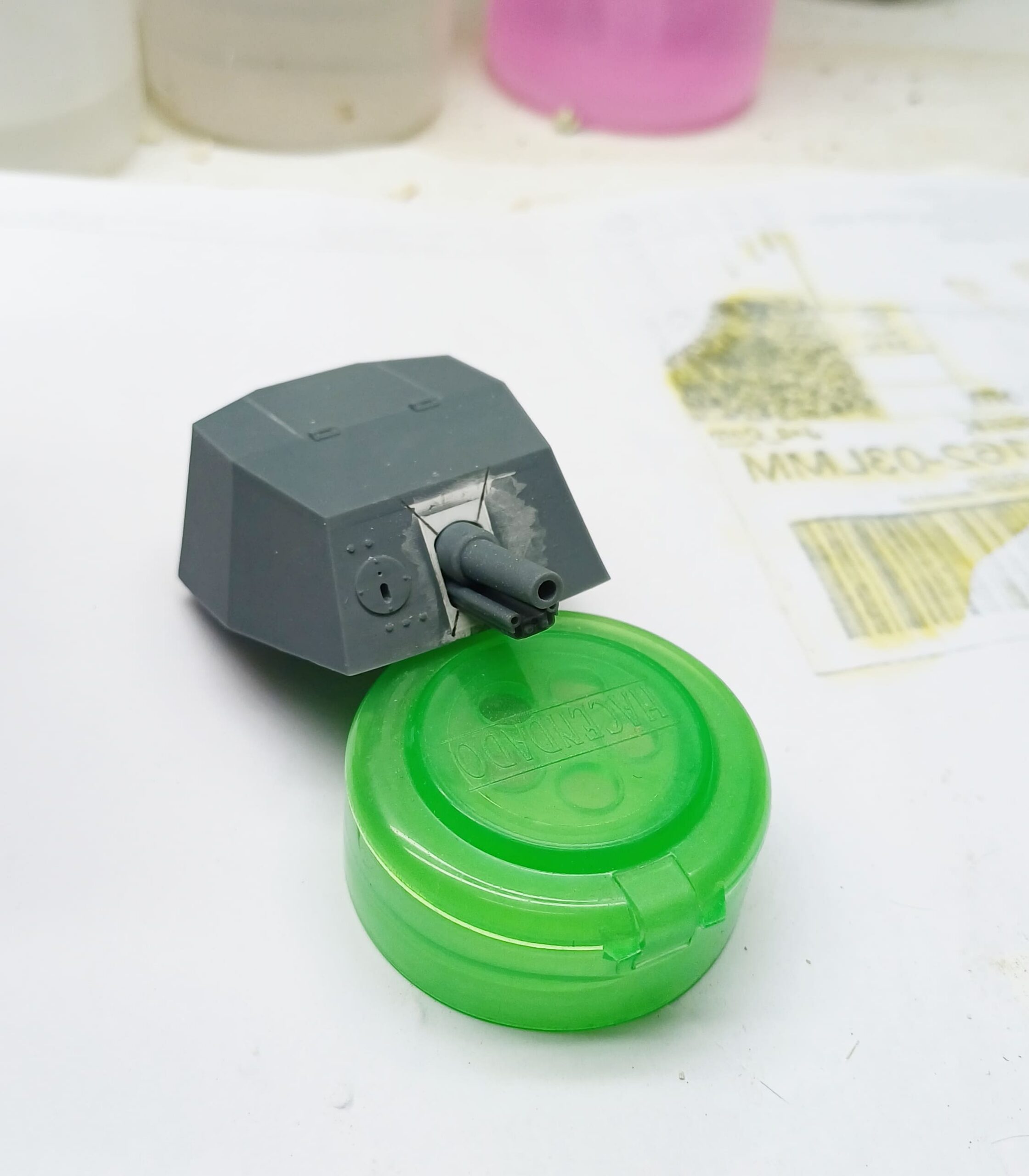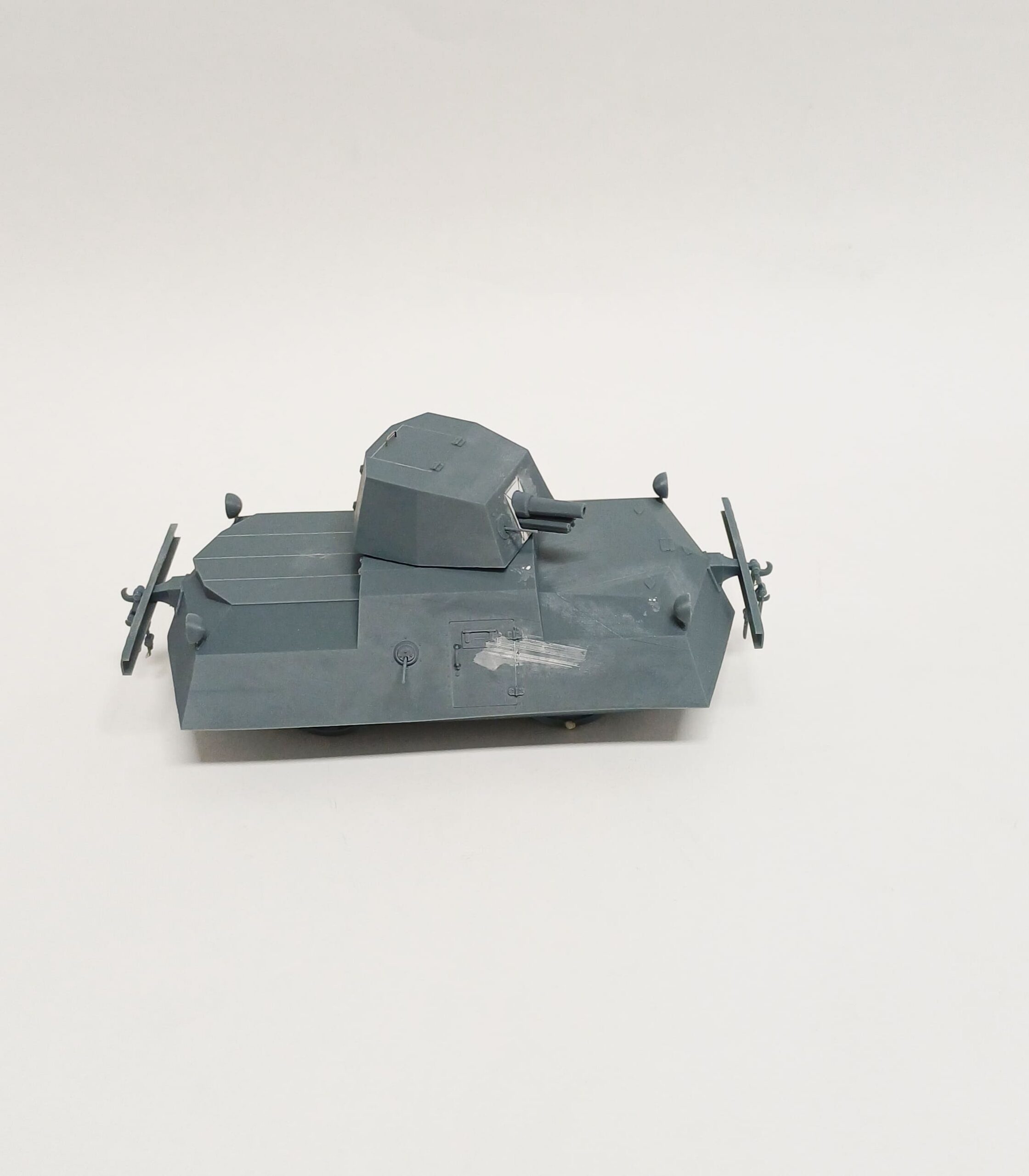 Landshipmodeling recently released the Soviet D-37 and DT-45 railcars. Landshipmodeling is an American brand that offers .stl files so you can 3D print their models yourself. The advantage is getting the files at a very low price; the disadvantage is actually being able to print them. Here’s the link to their website: https://landshipsmodeling.com/collections/digital-products. I’m certainly not a printing pro, but overall, it went pretty well, with a few minor flaws that I think I’ve corrected. There are very few parts to print because it’s a fairly basic vehicle: two hull halves, the turret, the four headlights, the machine guns, the door handles, the front and rear hitching system (modified), and that’s it. The only correction I made was to the gun mount, which is initially just glued onto the turret and therefore remains fixed. I also re-engraved some lines that weren’t deep enough.
