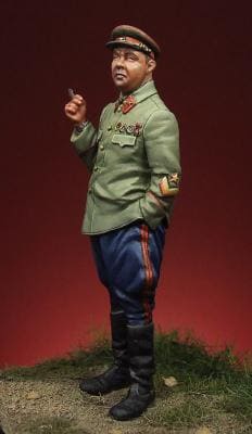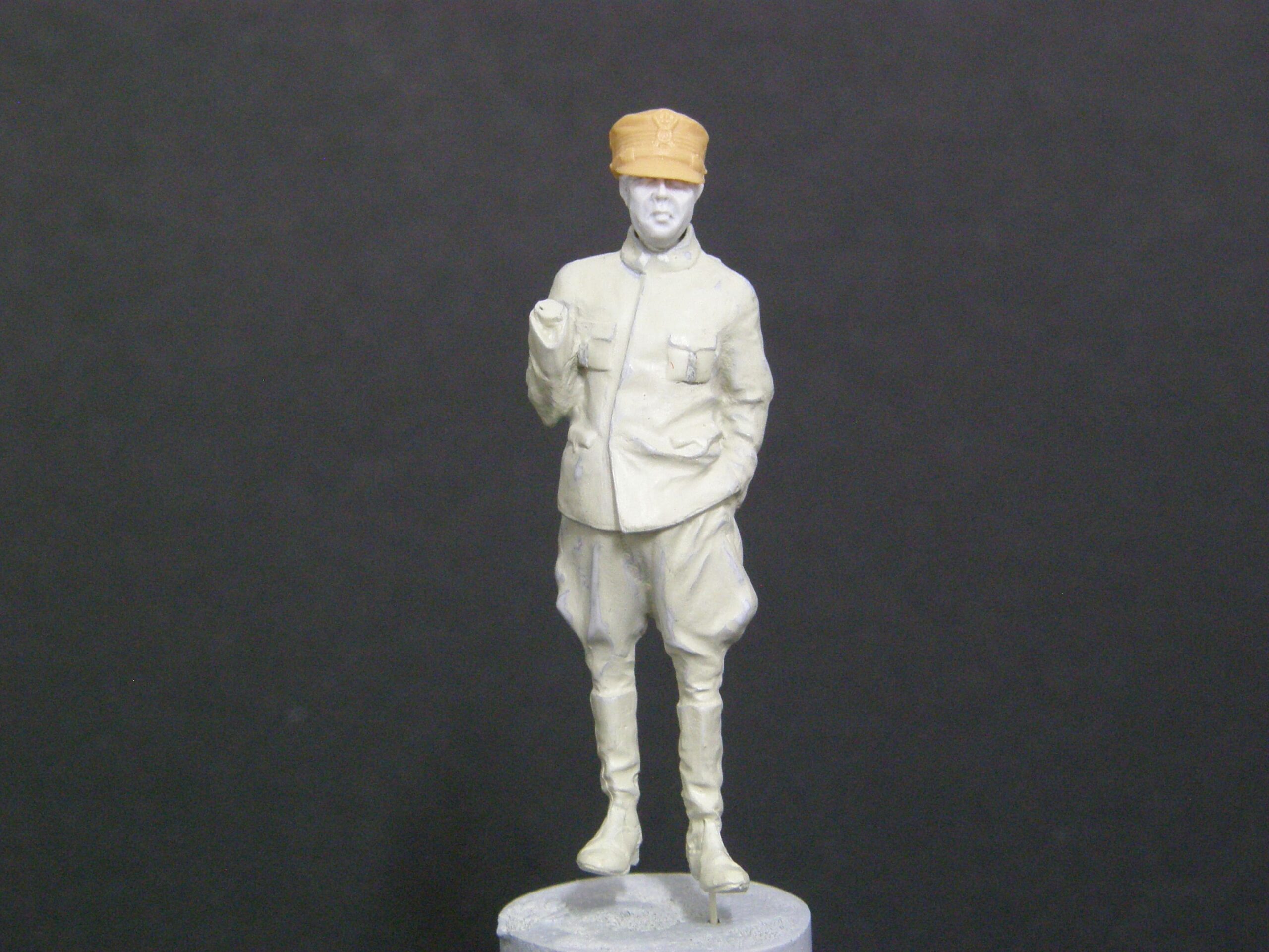 The paint was very classical, a gray primer and several layers of green with modulation effect then wash and pigments. The biggest work was the figurine because it was necessary to change the uniform of a Russian officer to make it correspond to an Italian officer of 1912.