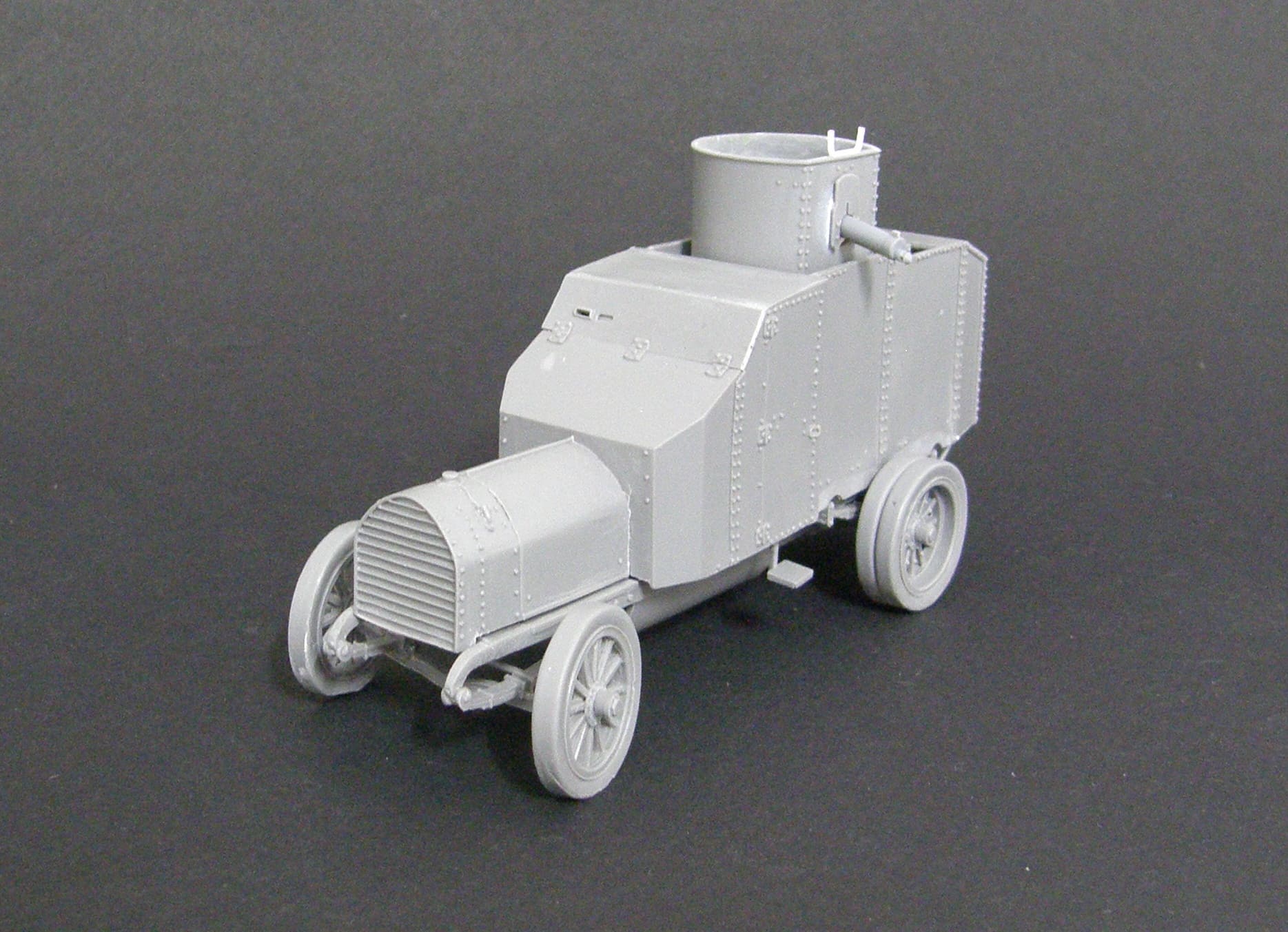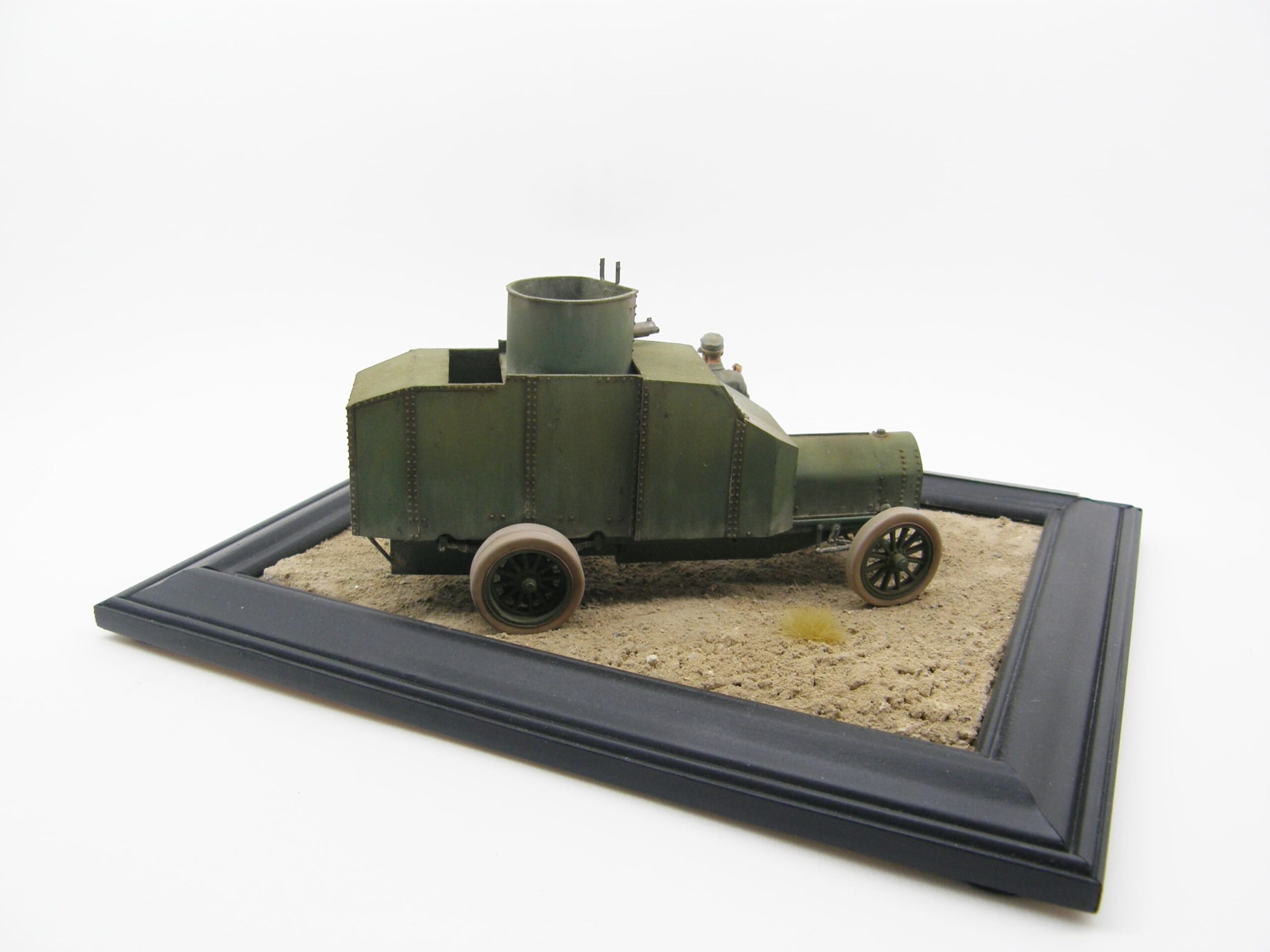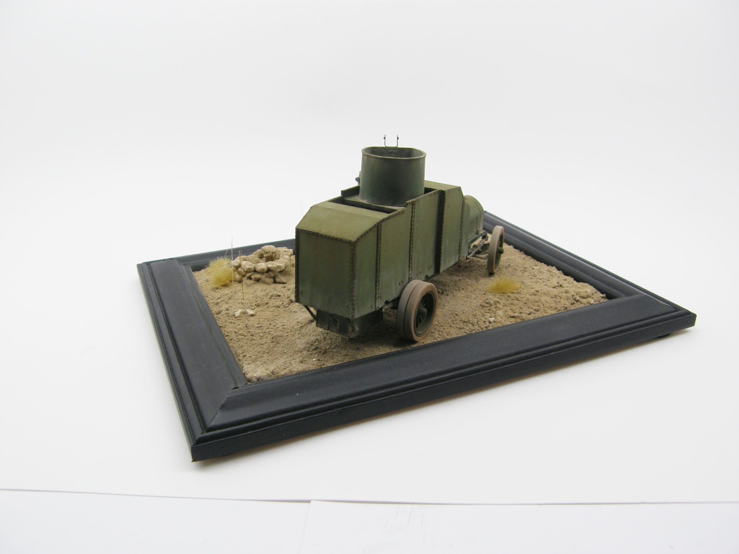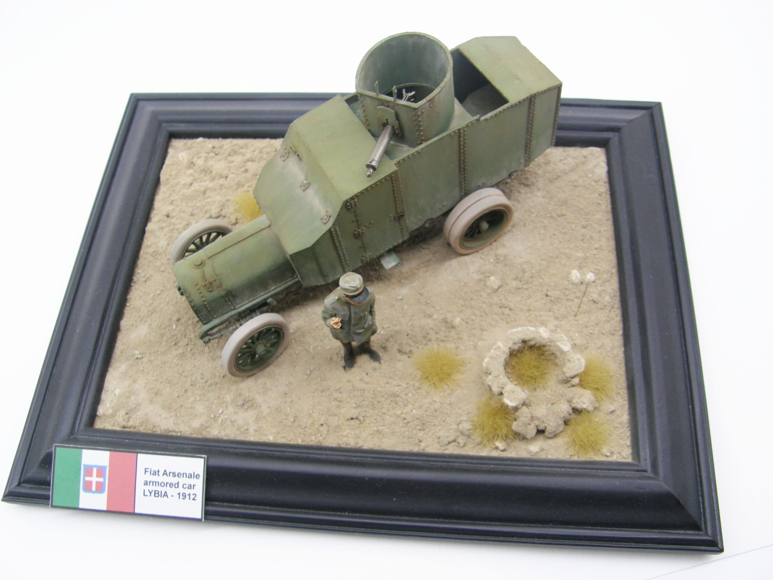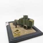The model was formerly produced by the Italian artisan crielmodel, it was recently remoulded and can now be found on ebay. The quality of the remoulding is very good, there is as often with resin models quite few parts which allows a quick assembly. Only the support for the searchlight has been added and the machine gun slightly modified. The figure is a « the bodi russian officer » reference which has been reworked to match the Italian uniforms of the time (artillery). Indeed, since the arsenal fiat was built by the artillery arsenal of Turin, it remains under the control of artillery during the Libya campaign.