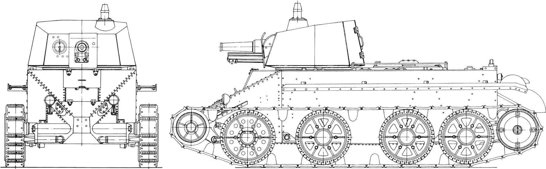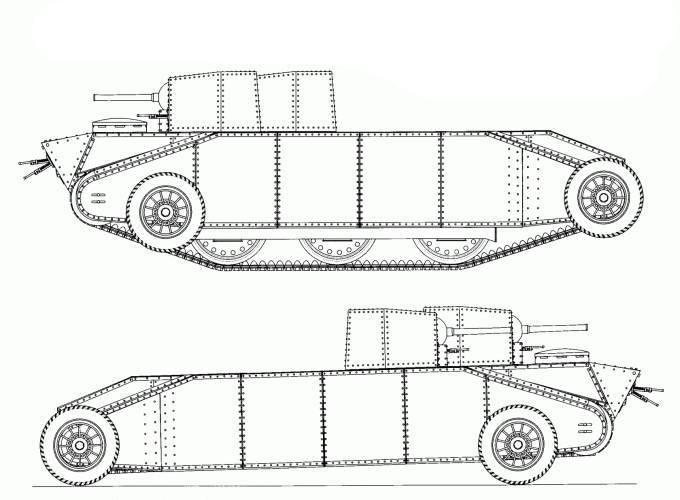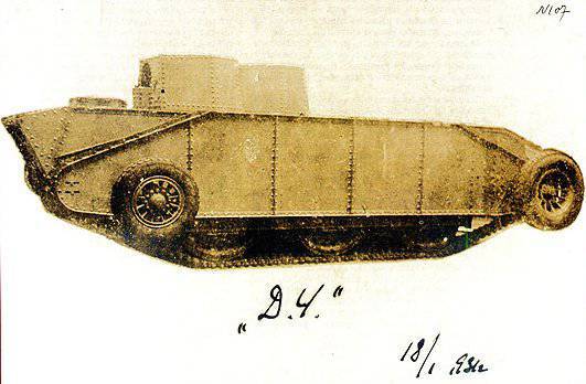– D-4: his first all-terrain tank model (tracks/wheels) capable of running on railways and equipped for underwater travel. Trials took place in March 1931, but it became clear that the new tank was so bulky, complex, and unreliable that mass production was impossible. The D-4 tank model was considered a failure, and all work on it was abandoned.